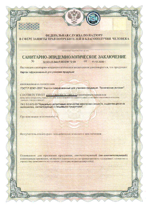 Свидетельство о государственной регистрации или письмо о соответствии продукции Единым санитарно-эпидемиологическим и гигиеническим требованиям – документ, подтверждающий, что продукция соответствуют установленным Единым гигиеническим нормам.